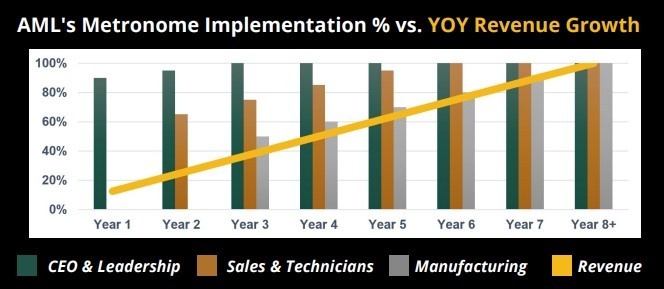 AML and Metronomics have continued working together over the 8 years. Why? The most tangible reason is that AML has quintupled (5x) their revenue since beginning the journey.